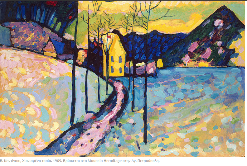 Β. Καντίνσκι, Χιονισμένο τοπίο. 1909. Βρίσκεται στο Μουσείο Hermitage στην Αγ. Πετρούπολη.