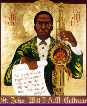 Όχι δεν είναι φωτομοντάζ, ούτε κάποια υπερβολή φίλων της τζαζ και του Τζον Κολτρέιν. Η αγιογραφία είναι κανονική, με τη βυζαντινή της τεχνοτροπία, με τα φωτοστέφανά της ακόμα και με τα ελληνικά της να εξηγούν το όνομα του εικονιζόμενου Αγίου. Εξυπηρετεί μάλιστα κανονικούς λατρευτικούς σκοπούς στον ομώνυμο ναό που είναι αφιερωμένος στον μεγάλο σαξοφωνίστα και συνθέτη της τζαζ. Ο ναός του Αγίου Ιωάννη του Κολτρέιν βρίσκεται φυσικά στις Ηνωμένες Πολιτείες, στο Σαν Φρανσίσκο.