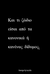 Δεν υπάρχει «πράμα» που δεν ξέρει ο Δίδυμος. «Πράμα»! Εσύ είσαι ηλίθιος, όχι αυτός. Τι θες και δεν ξέρει. Πως γίνονται οι εγχειρήσεις, τι γουστάρεις να φας, πως μπορεί να γίνει σωστά η διαπραγμάτευση για το χρέος, πως οδηγούν φόρμουλα… Θα ήταν καλύτερος από τον Schumacher, αν του δινόταν η ευκαιρία. Κλίκες μωρέ, ξέρεις
