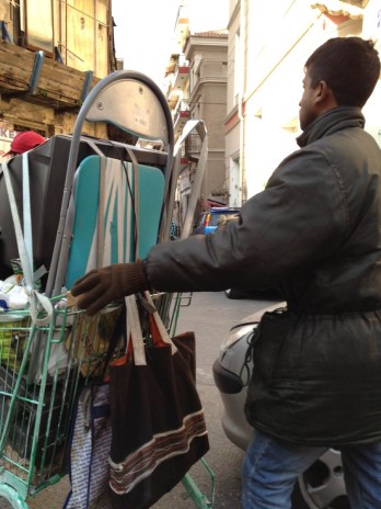 Τους βλέπω σχεδόν κάθε μέρα στο δρόμο, στη γειτονιά μου. Πάνε συνήθως δυο-δυο, αλλά δεν είναι Χιώτες, σίγουρα. Και σίγουρα, έτσι ακριβώς γυρνάνε σε όλες τις γειτονιές. Είναι κάτι ταλαιπωρημένα μελαμψά παιδιά, που σέρνουν ένα καρότσι από σούπερ μάρκετ, γεμάτο παλιοσίδερα. Κάθιδροι, κουρασμένοι, σπρώχνουν το καρότσι, που δεν οδηγείται και εύκολα όπως πολύ καλά ξέρουμε όλοι εμείς που καταναλώνουμε.