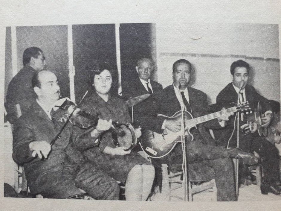 Γιώργος Κόρος, Σοφία Κολλητήρη, Μίμης Ανδριανός, Γιάννης Σκληρός σε πανηγύρι στον Ασπρόπυργο το 1963.Φωτό https://www.facebook.com/122066264513248/photos/a.226937077359499/1604971559556037/?type=3&theater