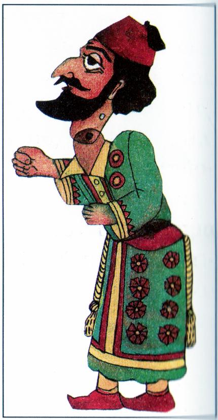 Οι Εβραίοι της Ελλάδας και οι Τσιγγάνοι συνήθιζαν, όπως και οι Έλληνες, να παίζουν θέατρο σκιών στα χρόνια της Οθωμανικής Αυτοκρατορίας. Είναι πολύ πιθανό, λοιπόν, η φιγούρα αυτή να είναι κατάλοιπο εκείνης της εποχής. Όταν αναφερόμαστε στον Εβραίο, πρέπει να διευκρινίσουμε πως αφορά ένα συγκεκριμένο τύπο της εβραϊκής κοινωνίας: τον έμπορο. Θα μπορούσε να αναφέρεται σε οποιονδήποτε έμπορο, οποιασδήποτε φυλής ή ράτσας.