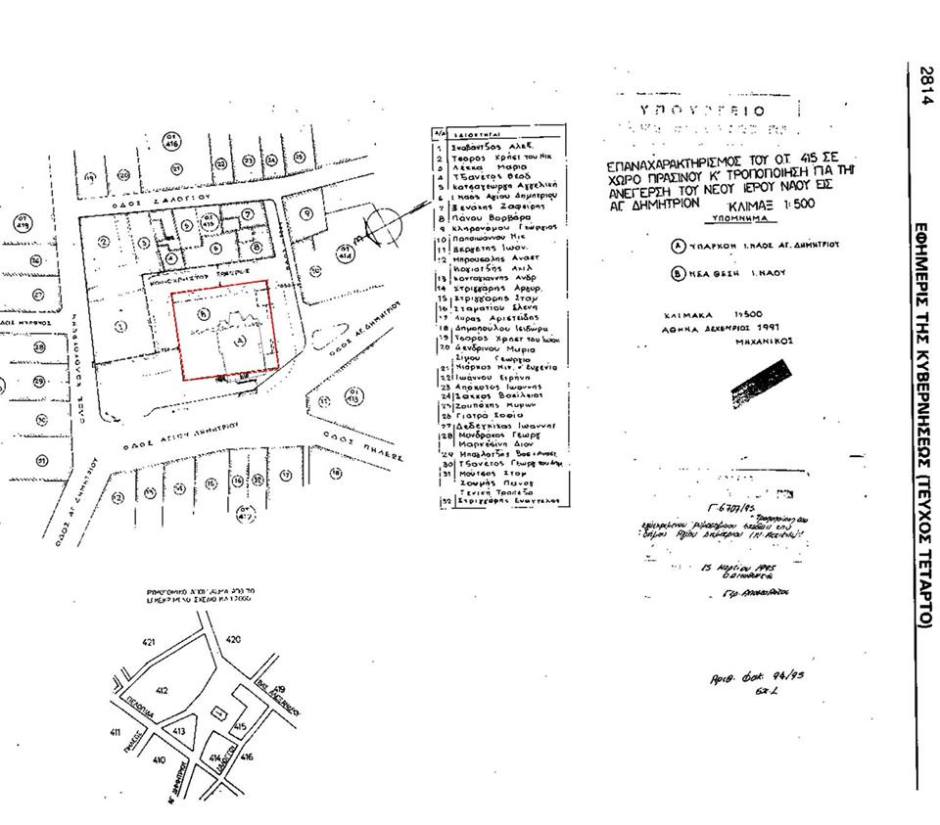 Το σωτήριο έτος 1992 και 1993 το Δημοτικό μας Συμβούλιο γνωμοδοτεί για την αλλαγή του ρυμοτομικού σχεδίου της πόλης μας με σκοπό τη διευκόλυνση της κατασκευής του νέου ιερού ναού Αγίου Δημητρίου μετά την κατεδάφιση του υπάρχοντος