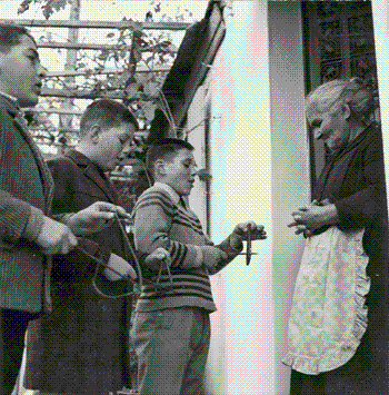 Η ΩΡΑ ΤΗΣ ΜΕΓΑΛΗΣ “ΜΟΙΡΑΣΙΑΣ – Χριστουγεννιάτικα κάλαντα. Αθήνα, 1950. Φωτογραφία του Δημήτρη Χαρισιάδη.