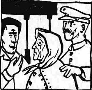 Εκ της ανταλλαγής των ολίγων λέξεων μετά της γραίας, ερωτωμένης εις την ξένην γλώσσαν και αποκρινομένης εις την γλώσσαν της στερεοτύπως «θέλω να πάω στο χωριό μ’», εξήχθη το συμπέρασμα από την ομήγυριν ότι επρόκειτο περί Ελληνίδος. Ο αστυνομικός ωμίλησεν εις το τηλέφωνον δι’ ολίγων και μετ’ ου πολύ κατέφθασαν ασθμαίνοντες δύο Έλληνες εκ των πολιτικών προσφύγων, των διαμενόντων εις την πολίχνην εκείνην της Τσεχοσλοβακίας. Διότι η γραία είχε διέλθει τα πολωνοτσεχικά σύνορα και ευρέθη, άνευ διαβατηρίου, εις την Τσεχίαν.