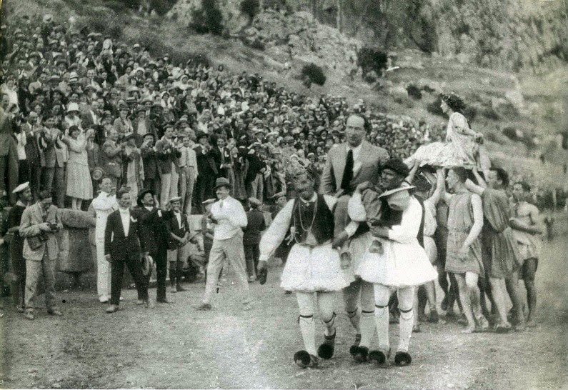 Οι συντελεστές της παράστασης, αμέσως μετά το πέρας της, σηκώνουν στα χέρια το ζεύγος Σικελιανού ενώ το κοινό τους αποθεώνει.