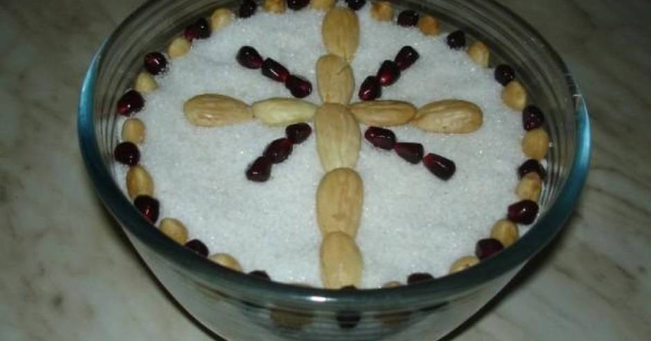 Πήρα την Έλενα που ξέρει από εκκλησιαστικά και έθιμα, και αυτή με παρέπεμψε στη μάνα της την Ντίνα.«Θα το φτιάξουμε παρέα» μου είπε.«Μην πάρεις σταφίδες και ρόδια, έχω. Και σταυρό έχω». «Χρειαζόμαστε και σταυρό;» ρώτησα αφελώς.«Για επάνω στο δίσκο» μου εξήγησε.«Έλα και θα το φτιάξουμε».