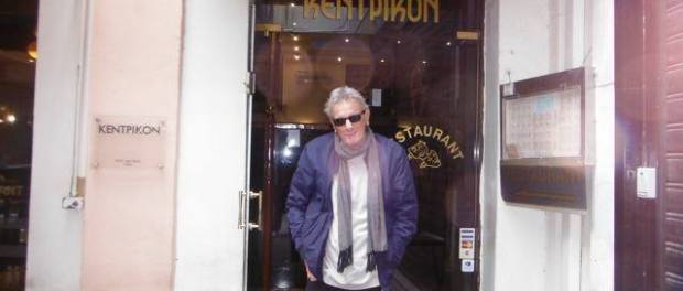 Γνωστός imaginistas, εκ των ενθέρμων υποστηρικτών του ιστορικού ρεστωράν ΚΕΝΤΡΙΚΟΝ, ποζάρει στην είσοδο του καταστήματος. (photo – Divya Symmers)