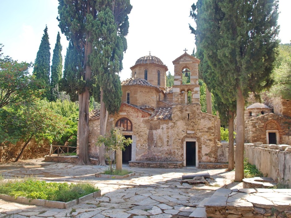 Είχα ξαναεπισκεφτεί το μοναστήρι με είσοδο τρία ευρώ για να θαυμάσω τη βυζαντινή αρχιτεκτονική του ναού και των υπόλοιπων κτηρίων. Μα σήμερα η χαρά μου ήταν μεγάλη στο απροσδόκητο γεγονός να παρακολουθήσω τη λειτουργία σε ένα ναό του εντέκατου αιώνα. Ο χώρος όλο κόσμο και φωνές, όλο ζωή αυθόρμητη, χωρίς τα λόγια τα ξερά των ξεναγών, που απαιτούν ησυχία για να ακούγονται. Ο ναός κατάμεστος και στο νάρθηκα σωρός οι άρτοι για την αρτοκλασία…