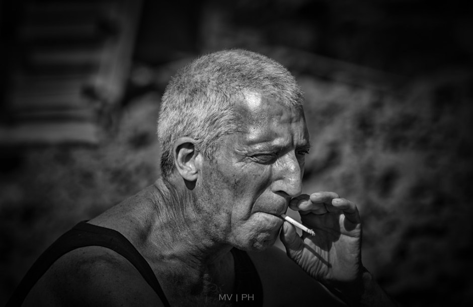 Με ταχυδακτυλουργικές κινήσεις μετουσίωνε σε καπνό –μέσα σ’ ελάχιστα λεπτά- τα Άσσος άφιλτρα, αυτά που λένε και στούκας. Τέλειωνε το τσιγάρο, άναβε αμέσως καινούριο και το κάπνιζε μέχρι να καούν τα δάκτυλα του.