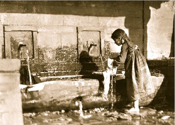 Όταν ήμουν μικρό κορίτσι, η μητέρα με έστελνε συχνά να φέρω από μια κοντινή πηγή, αρτεσιανό νερό. Η πηγή αυτή βρισκόταν δίπλα στις γραμμές του τρένου. Για να φτάσω εκεί, έπρεπε να περάσω μέσα από τα χτήματα με τις πορτοκαλιές. Φτάνοντας στο σημείο, για να την προσεγγίσω, έπρεπε να ακροβατήσω πάνω στα ξύλα της σιδηροδρομικής γραμμής που βρίσκονταν σε κενό, τουλάχιστον δύο μέτρων. Κατόπιν έπρεπε να κατέβω από ένα στενό μονοπατάκι μέσα στο ρέμα, εκεί που έτρεχε το νερό, για να μπορέσω να γεμίσω το δοχείο. Το σημείο λόγω του νερού που ανάβλυζε συνεχώς, είχε πλούσια βλάστηση με καλάμια. Από την Άνοιξη κιόλας ήταν πολύ πιθανό να συναντήσεις φίδια και άλλα διψασμένα ζούδια. Τα βατράχια ήδη τα άκουγες από μακρυά που κόαζαν.