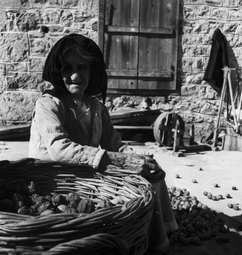 Ηλικιωμένη γυναίκα καθαρίζει καρύδια. Επίδαυρος, 1952 Νικόλαος Τομπάζης (ΦΑ_10_2710)