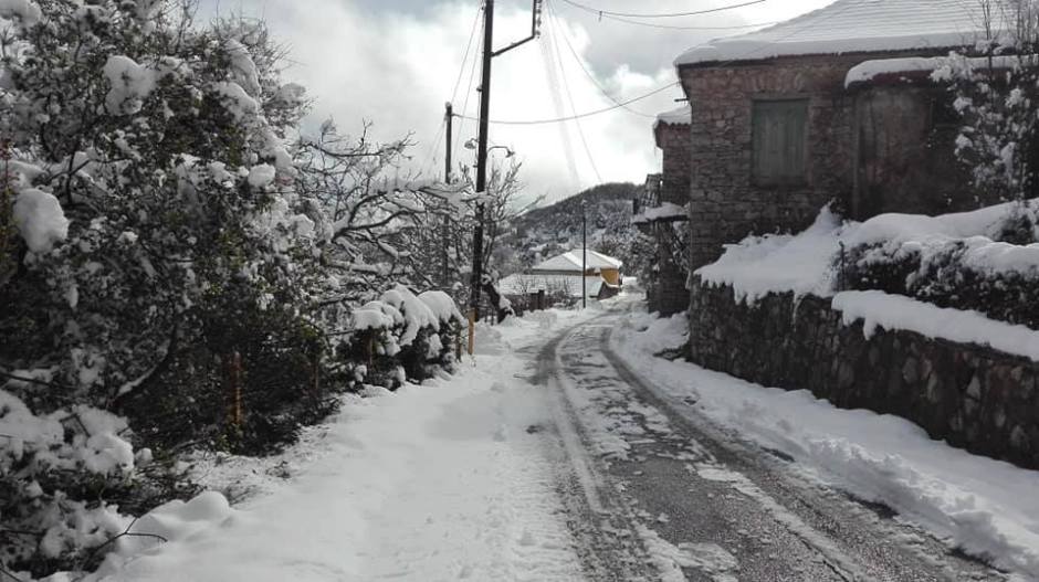 χιονισμένο τοπίο του χωριού Ίσαρι