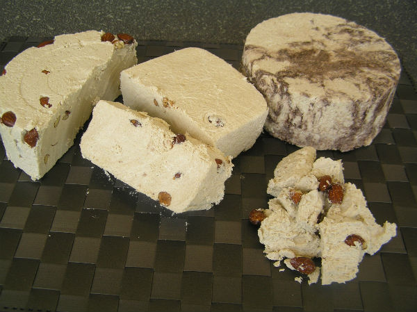 Χαλβάδες (σούτζι χαλβά – άσπρα κομμάτια σε σχήμα ρόμβου, chana halva – στρόγγυλα ανοιχτόχρωμα κομμάτια – και gajar halva – στρόγγυλα κομμάτια με σκούρο χρώμα).