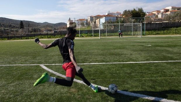 Παίζουν ποδόσφαιρο στην αιολική γη. Παίζουν με κανονική μπάλα, όχι με πανιά δεμένα. Την κλοτσούν πάνω στο πλαστικό χορτάρι σε κανονικό τέρμα, όχι στο αφρικανικό κοκκινόχωμα του λατερίτη, έχοντας κοτρόνες για δοκάρια.