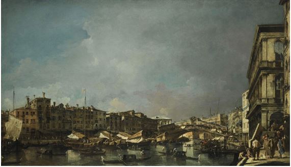 Ο πλήρης τίτλος του πίνακα είναι: “Βενετία, μια άποψη της γέφυρας Ριάλτο, κοιτώντας βόρεια από την Φονταμέντα ντελ Κάρμπον”. Θεωρείται ένας από τους τέσσερις σημαντικότερους του Φραντσέσκο Γκουάρντι και το 2011 πουλήθηκε από τον οίκο Sotheby’s στην τιμή ρεκόρ για την χρονιά, των 42,9 εκατομμυρίων δολαρίων.