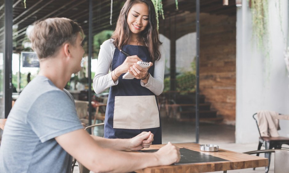 customer ordering food toward waitress at the restaurant; Shutterstock ID 684205294; Purchase Order: –