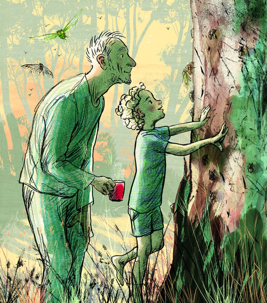 Και όντως ο πατέρας μου πήρε το μήνυμα. Μια εβδομάδα αργότερα, μονάχος του έφερε πίσω στο σπίτι τους παππούδες. Έτσι και εγώ, χωρίς καμία υπενθύμιση, σταμάτησα να φτιάχνω «ελικόπτερα». Και εκείνο το καλοκαίρι πήξαμε από σμήνους τζιτζικιών, που ξαναέφυγαν όπως ήρθαν, ασυναρμολόγητοι, δίχως την περιβόητη ουρά…