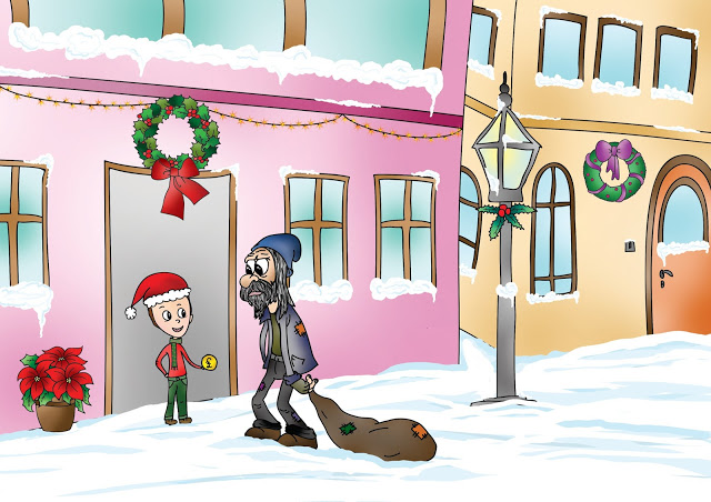 Έτρεξα στην πόρτα με τη μισή λίρα. Ήταν ένας γέρος φτωχός, με κάτασπρη γενειάδα, γερτός από τα χρόνια, και τρέμοντας από το κρύο μουρμούριζε ευχές.