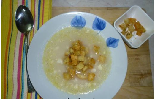 Με μπόλικο τυρί φέτα και ψωμάκι ή κρουτόν, τρώγεται για πρωινό,