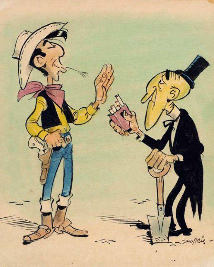 Το 1988 ο Παγκόσμιος Οργανισμός Υγείας βράβευσε τον Μορίς για την… εξαφάνιση του τσιγάρου από το κόμικ. .