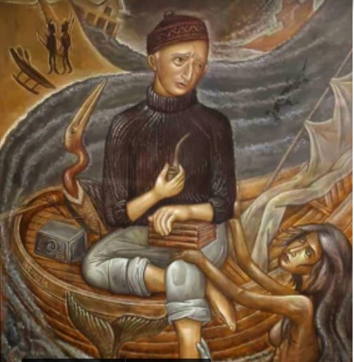 — Στους δικούς σας δε γράφατε ποτέ για τις τρικυμίες και τους κινδύνους. Τι σκεφτόσασταν όταν το καράβι κινδύνευε; Βλέπω συχνά στον ύπνο μου ένα άσπρο καρχαρία με περιμένει νηστικός ή εγώ τον περιμένω;