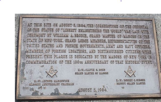 Η συμβολή των μασόνων στην κατασκευή της βάσης του μνημείου, πιστοποιείται από επιγραφή. Στις ΗΠΑ ο Τεκτονισμός δεν είναι ταμπού, όπως στην Ευρώπη.