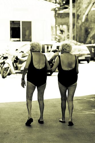 Όλοι έχουν ένα ρόλο μέσα σε αυτήν την μικροζωή των διακοπών. Μόνο οι υπερήλικες κρύβονται και δεν τολμούν να βγουν έξω να δηλώσουν με τόλμη την παρουσία τους. Ντρέπονται να εκθέσουν την φθορά των σωμάτων τους μπροστά στην ανυποψίαστη αυθάδεια μιας νιότη που παραζαλισμένη παραπαίει. Ζουν λοιπόν στις παρυφές του χώρου, όταν το φως δεν λάμπει και τόσο κι ο τόπος γεμίζει σκιές. Πριν πέσει το σκοτάδι, τις ήπιε ώρες του δειλινού πριν η νύχτα αρχίσει να κροταλεί τις υπερκινητικές διασκεδάσεις της. Τότε στις άκρες του μικρού κολπίσκου αρχίζουν να ξεπροβάλλουν οι ηλικιωμένοι και υποβασταζόμενοι για να χαρούν τις ομορφιές και τα χρώματα της θεσπέσιας ώρας. Εκεί στις άκρες, κάτω από τους σκονισμένους ευκαλύπτους και τα αρμυρίκια, πάνω σε κάτι ξεχαρβαλωμένα παγκάκια κάθονται για να ατενίσουν τον ήλιο, που χάνεται στα ήρεμα νερά. Καθώς ο ήλιος αποσύρεται όλα γύρω γίνονται μαβιά πριν χαθούν στο απόλυτο σκοτάδι. Δυο ανερμάτιστα, τρελά παιδιά που εκείνη την ώρα τελειώνουνε το απογευματινό τους μπάνιο είχανε ερισθεί αφάνταστα με την παρουσία δυο γεροντισσών που πάντα εκείνη την ώρα έρχονταν και κάθονταν στο ίδιο ξεχαρβαλωμένο παγκάκι και τρώγανε σιωπηλά το παγωτό τους κοιτώντας το πέλαγος. Τις φωτογραφίζανε με τα κινητά και προσπαθούσανε να ακούσουν τι λένε. Αυτές οι δυο ηλικιωμένες αποτελούσαν για ένα ανεξήγητο λόγο την διασκέδασή τους. Τους είχανε βγάλει μάλιστα και παρατσούκλια. Την πιο βαριά την δυσκίνητη την λέγανε «ζυμαρένια κούκλα», την άλλη την αδύνατη και νευρικιά την είχανε ονομάσει «σκουριασμένη κονσέρβα». Η «ζυμαρένια κούκλα» κατά κόσμον «Μαριγούλα» παρ’ όλα τα χρόνια της έβαφε ακόμα τα μαλλιά της ξανθά, φορούσε ένα ανάερο, φθηνό νυχτικό της σειράς, κρατούσε ένα μπαστούνι και κάθε απόγευμα έτρωγε ένα παγωτό χωνάκι. Η άλλη η ξερακιανή κι αεικίνητη, ήτανε πιο προσεγμένη. Φορούσε φορέματα παλιά, αυτά που της είχανε απομείνει από τα χρόνια της νιότης της. Αυτή δεν κρατούσε μπαστούνι και με τα στραβά της πόδια πατούσε ακόμα γερά την γη. Είχε τα μαλλιά της βαμμένα με ένα κόκκινο, σκουριασμένο χρώμα που η πολυκαιρία το είχε μισοασπρίσει τόσο που δικαίως υποψιαζόσουν ότι η «Θέκλα» (αυτό ήταν το κατά κόσμον όνομά της) περνούσε τις αραιές της τούφες με βαμπάκια βουτηγμένα στο ιώδιο. Το δέρμα του προσώπου της καφέ γεμάτο πανάδες από τον ήλιο, το μόνο που έλαμπε πάνω της ήταν δυο μάτια γεμάτα ηλεκτρισμό και εμπειρίες ζωής. Στα νιάτα της πρέπει να ήταν πολύ κοκέτα και δραστήρια γυναίκα. Από καιρού εις καιρόν φορούσε και ένα μεγάλο, θεαματικό καπέλο από καφέ μουσελίνα, στολισμένο με καφέ τριανταφυλάκια από το ίδιο τούλι, σε άλλη απόχρωση όμως. Αυτό όμως που δικαιολογούσε απόλυτα το παρατσούκλι της «σκουριασμένη κονσέρβα» ήταν η φωνή της. Ήταν σαν μέσα στο λάρυγγά της να κροταλούσαν σκουριασμένα πιρούνια και κουτάλια και να δημιουργούσαν παράξενους θορύβους που η πρέσα της μύτης της, της παρέδιδε στον ουρανίσκο της σαν καλοσιδερωμένες, συρτές, χάλκινες λέξεις έτι που να σου δημιουργείται η εντύπωση όταν η Θέκλα ρητόρευε ότι όλη την ώρα έφτυνε στραβωμένα, καπάκια μπύρας. Η «Σκουριασμένη κονσέρβα» έτρωγε πάντα παγωτό σε κυπελάκι.