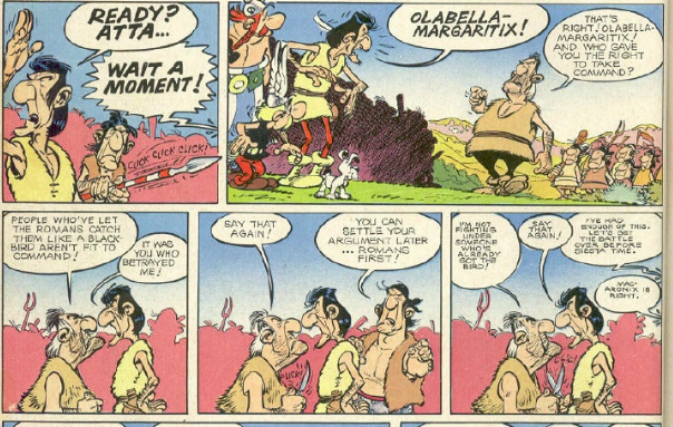 Guest star σε ένα από τα καλύτερα επεισόδια του φημισμένου και αγαπημένου Asterix. Οι γνώσεις των Goscinny και Uderzo για τους υπόλοιπους ευρωπαϊκούς λαούς ξεδιπλώνονται μία ακόμα φορά. Δεν εστιάζουν στις γλωσσικές διαφορές ποτέ, αλλά στα ήθη και έθιμα και στις συμπεριφορές.