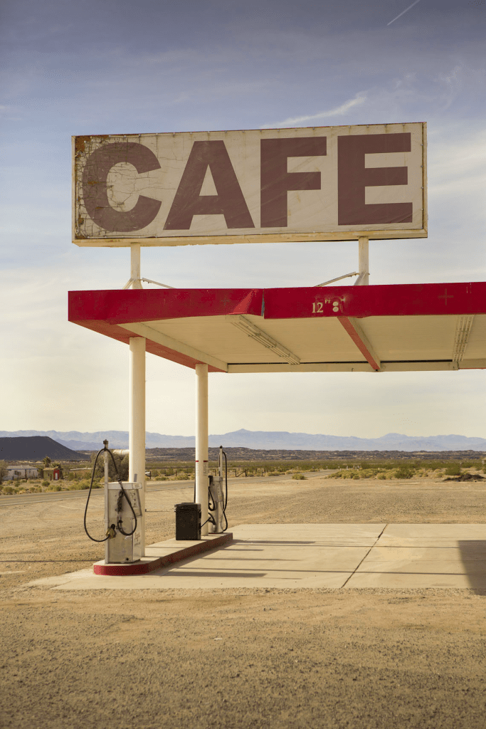 “Κάποτε οι δρόμοι αυτοί ήταν γεμάτοι αυτοκίνητα. Όλα άλλαξαν όταν κατασκευάστηκαν οι interstate αυτοκινητόδρομοι” μου είπε ο άνθρωπος στο ταμείο. Και συνέχισε, “Τα βενζινάδικα στην επαρχία της Αμερικής είχαν κουλτούρα. Βενζίνη, λάδια και γράσο, ήταν στο standard μενού των υπηρεσιών. Μια ζωή με ένα πανί στην τσέπη να καθαρίσουν τα χέρια από τα λιπαντικά. Και τα χέρια ήταν μόνιμα μαύρα. Δολάρια, πολλά δολάρια τότε. Δεν είχαν τι να τα κάνουν. Δούλευαν 7 μέρες την εβδομάδα για 24 ώρες. Έγιναν τεράστιες περιουσίες από αυτά τα βενζινάδικα. Τα pin up girls υπήρχαν. Όποιος έβαζε την κόρη του με σορτς και πουκάμισο δεμένο στον ομφαλό γινόταν πλούσιος.”