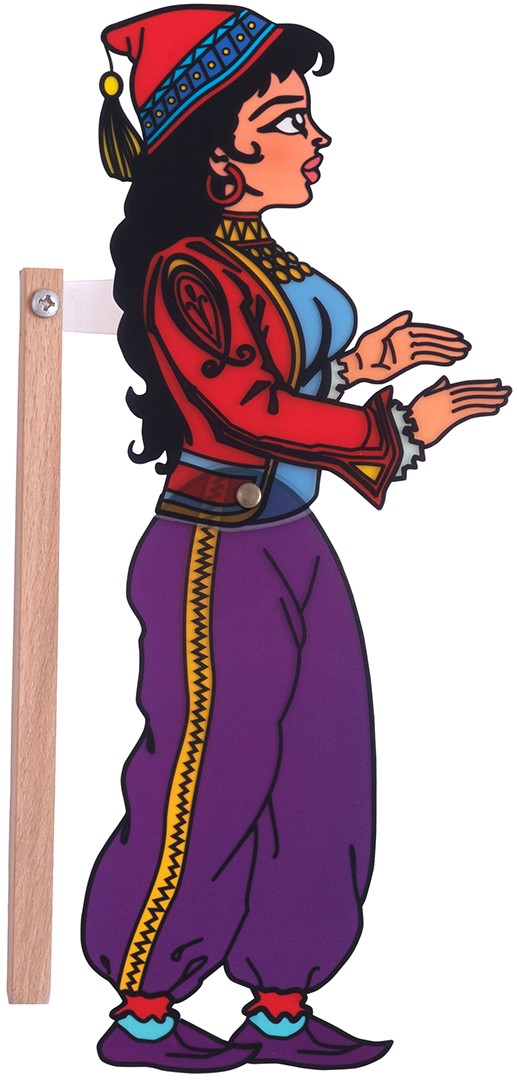 Έξω από μια υπαίθρια ταβέρνα, μέσα στα πεύκα, δίπλα στη θάλασσα, κάπου… δε θυμάμαι πού. Θυμάμαι μονάχα το φωτισμένο πανί, αριστερά την καλύβα του Καραγκιόζη, δεξιά το παλάτι του Βεζύρη, φουστανέλες, σαλβάρια, γιαταγάνες, φασαρία, φωνές και ανάμεσα σ’όλα αυτά, μια μικρή χαριτωμένη φιγούρα, ένα νεαρό κορίτσι ακίνητο, κρατώντας στην αγκαλιά της ένα σάζι. Όποτε εμφανιζόταν στο πανί αυτή η φιγούρα, ακουγόταν από τα ηχεία ένας μακρόσυρτος αμανές και κολλητά (δεν ξέρω αν γινότανε τυχαία) έβγαινε στη σκηνή ο Σταύρακας και έσκουζε κάτι ζεϊμπέκικα του θανάτου.