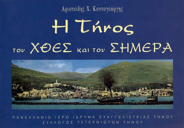 Από τις πολυάριθμες εκδόσεις φωτογραφικών λευκωμάτων του αγαπητού φίλου και συμπολίτη μας Αριστείδη Κοντογεώργη, ξεχωρίζουμε το βιβλίο του με τον τίτλο «Η Τήνος του Χθες και του Σήμερα» όπου μας ταξιδεύει στο πανέμορφο νησί της Τήνου μέσα από εξαιρετικές φωτογραφίες του σήμερα και του παρελθόντος. Ο Αριστείδης Κοντογεώργης είναι καθηγητής στο Τμήμα Φωτογραφίας και Οπτικοαουστικών Τεχνών της Σχολής Γραφικών Τεχνών και Καλλιτεχνικών Σπουδών . Έχει πραγματοποιήσει δεκάδες ατομικές εκθέσεις φωτογραφίας στην Ελλάδα και το εξωτερικό και έχει συμμετοχές σε ομαδικές εκθέσεις στο εξωτερικό στο πλαίσιο διεθνών ανταλλαγών και φεστιβάλ. Έργα του βρίσκονται σε συλλογές μουσείων στην Ελλάδα και στο εξωτερικό.