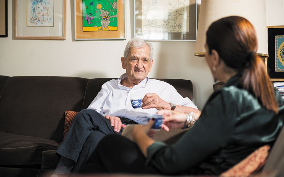 Αφορμή για τη συνάντησή μας είναι μια ποιητική συλλογή, «Ο δρόμος και πάλι», που μόλις κυκλοφόρησε από τις εκδόσεις Κίχλη. Και στην κουβέντα μας –για την πανδημία, την ποίηση, τους νέους– ωσεί παρόντες είναι πολλοί. Από τη φίλη του Ελένη Γλύκατζη-Αρβελέρ: «Γνωριστήκαμε τη δεκαετία του ’40, μέσω της “Διάπλασης των Παίδων”. Τα ψευδώνυμά μας ήταν… φτερωτά το δικό της “Διαβατάρικο Πουλί”, το δικό μου “Αλμπατρος”». Και τον Κώστα Ταχτσή: «Στις εξετάσεις για εισαγωγή στη Νομική Σχολή Αθηνών, το 1946, καθόταν δίπλα μου. Εκεί γνωριστήκαμε και γίναμε φίλοι». Μέχρι τον Νικηφόρο Βρεττάκο: «Εκτός από καλός ποιητής ήταν από τους καλύτερους ανθρώπους που έχω γνωρίσει. Σε αντίθεση με άλλους, που δεν βοήθησαν ποτέ κανέναν, όπως ο Κώστας Βάρναλης. Αλλά με τα χρόνια έχω εκπαιδευτεί να ξεχωρίζω τους ανθρώπους από το έργο τους…».