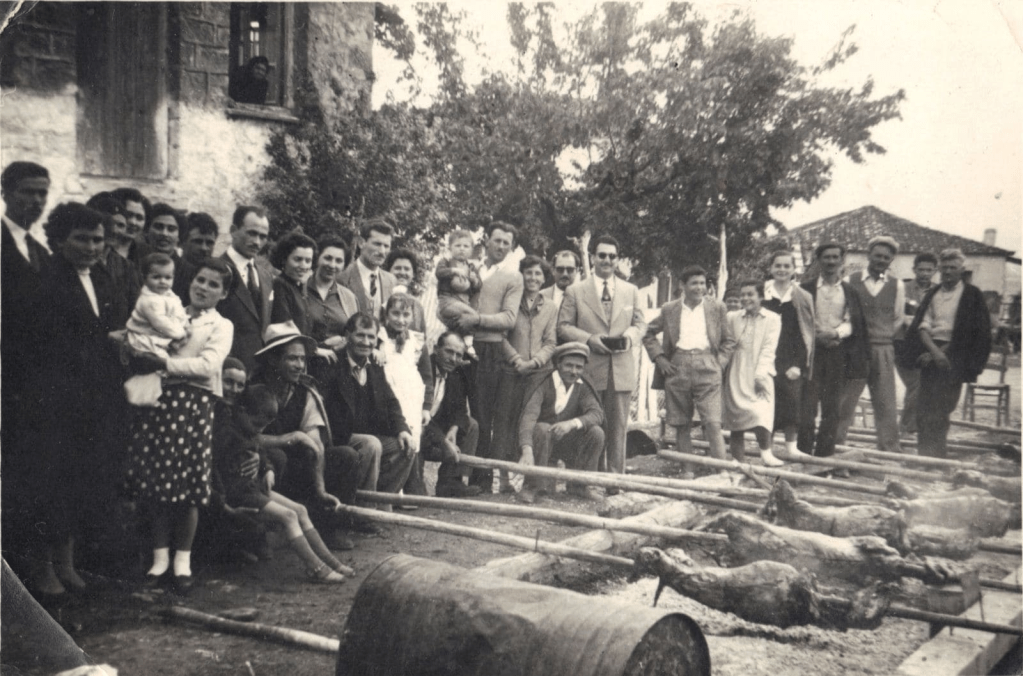 Όλη η γειτονιά ψήνει σε ένα σημείο. Ένα σημείο που στον πόλεμο στρατοπέδευαν οι Γερμανοί. Ο πόλεμος, κι ο ένας κι ο άλλος, ο εμφύλιος έχει τελειώσει. Στη φωτογραφία είναι όλοι μαζί, αντίπαλοι και συμπολεμιστές του εμφυλίου. Αυτοί είναι δυνατοί, έχουν ξεχάσει όπως πρέπει.