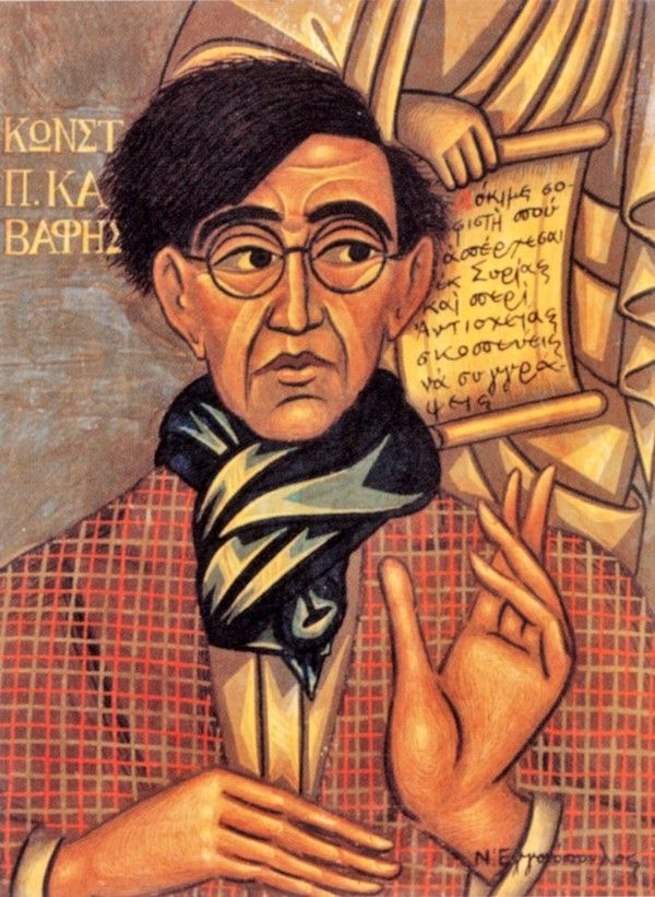 Ο αγαπημένος ποιητής του Εγγονόπουλου, αποδίδεται από μια φωτογραφία που του έδωσε ο Τόμπρος, όταν ο Καβάφης ήταν άρρωστος στο Νοσοκομείο του Ερυθρού Σταυρού.