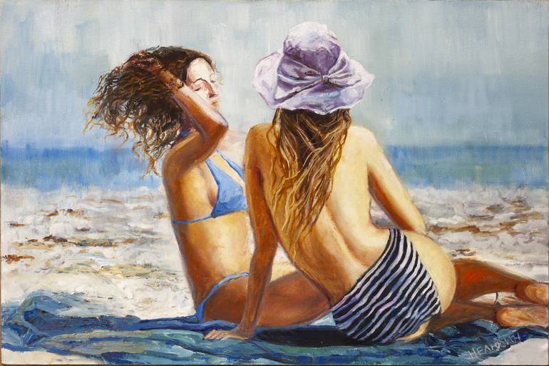 Beach Day , landscape, nude girl Painting by Oleksandr Neliubin