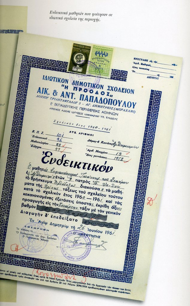 Έψαξα στο λεύκωμα του Δήμου για να αντλήσω κάποια στοιχεία. Να μάθω τουλάχιστον ποιες χρονιές λειτούργησε ή αν υπάρχει κάποια φωτογραφία μαθητών από αυτό. Από το κείμενο που συνοδεύει το κεφάλαιο ΣΧΟΛΕΙΟ (σελ. 88-117) και τις ωραίες φωτογραφίες με τις λεζάντες τους, μπορείς να μάθεις κάποια πράγματα.