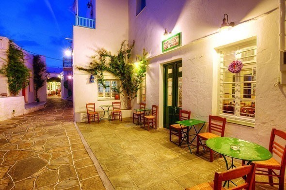 Καφενεδάκι παραλιακό με μπλε τραπεζάκια κι άσπρους