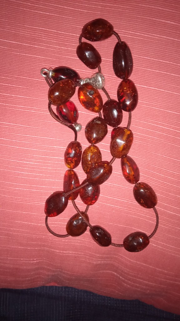 Ρητίνη από πεύκα που έχει απολιθωθεί τουλάχιστον τριάντα εκατομμύρια χρονάκια πριν, για να φτάσει στα χέρια μας σε μορφή χάντρας, υφάντρας ηδονών. Να σεργιανίζει η ματιά μες στα βαθιά της τα νερά και τους ιριδισμούς και να την αποπλανεί. Και να μαγεύεται η ακοή από τον ήχο το γλυκό, τον ρυθμικό τον ήχο. Αλλά προπάντων η αφή, αυτή είναι που πρώτη θα δεχτεί την πιο μεγάλη ηδονή από τα χάδια στο ήλεκτρο. Θηλές οι χάντρες από μαστούς αγαπημένους και χιλιοχαϊδεμένους, βυζαίνουνε οι ρώγες των δακτύλων μας τη ζεστασιά τους, τη θαλπωρή εκείνη την παυσίλυπη, που μόνο η αγιότητα μπορεί να μεταδώσει…