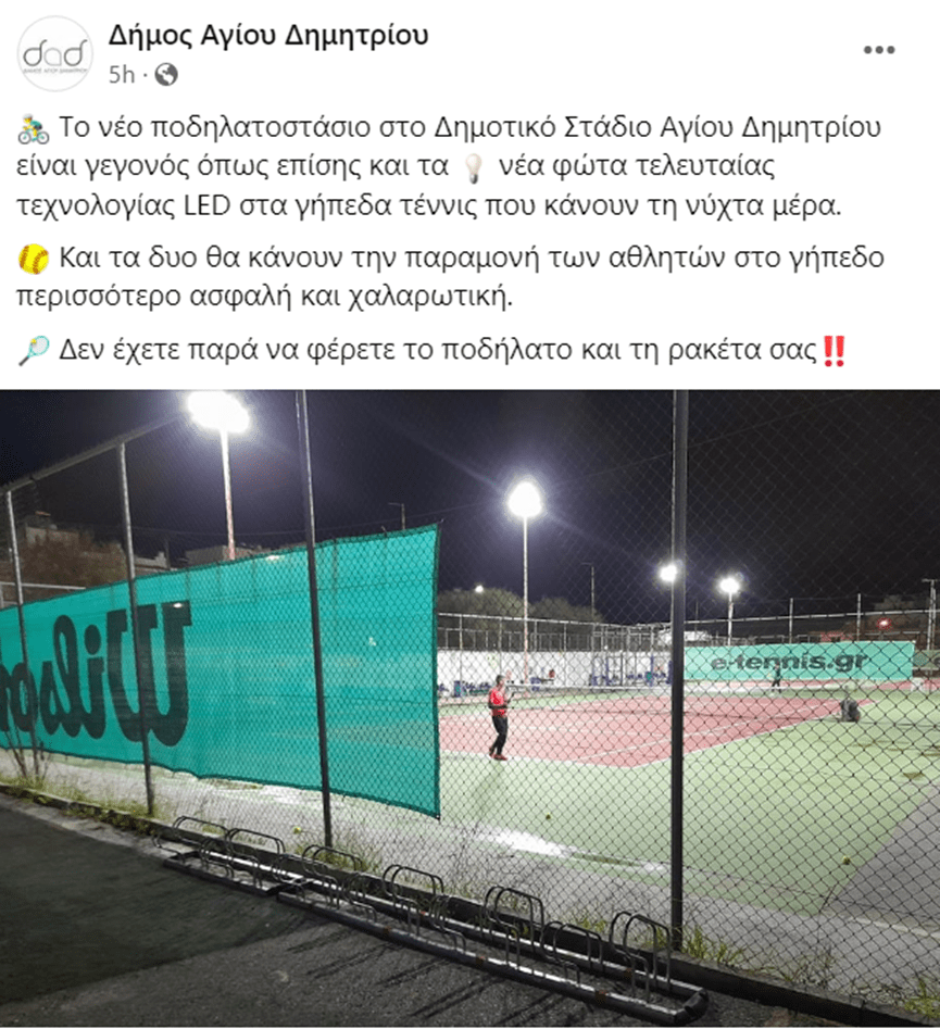Βέβαια, αυτό δεν είναι αρκετό. Χρειάζεται να είσαι αθλητής και να έχεις ένα ποδήλατο και μία ρακέτα για να πας στο γήπεδο να απολαύσεις τα παρκαρισμένα ποδήλατα, φωτισμένα με τις νέας τεχνολογίας λάμπες LED (Light Emitting Diodes).