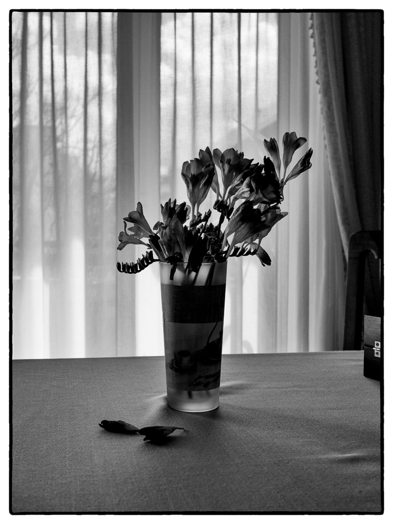 όταν ανθίζουν, κάθε βδομάδα, κάποιες από αυτές μετακομίζουν στο ποτήρι-ανθοδοχείο, μια προσωρινή ψευδαίσθηση παρουσίας της φύσης στο εσωτερικό του σπιτιού, όπως είναι και όλα τα ανθοδοχεία.
