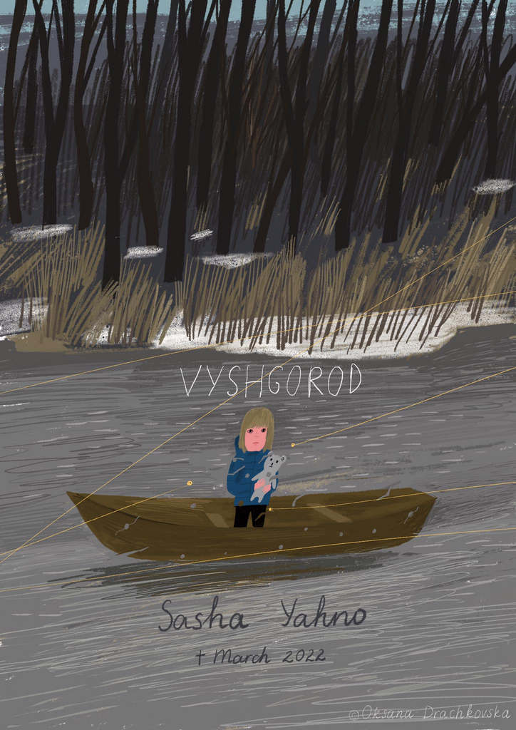 Η Oksana Drachkovska, γεννημένη το 1987 στο Chernivtsi της Ουκρανίας, είναι εικονογράφος και σχεδιάστρια βιβλίων. Πριν τη ρώσικη εισβολή ζωγράφιζε εξώφυλλα βιβλίων και εικονογραφούσε ιστορίες και παιδικά παραμύθια.[a] Τώρα, οι εικόνες της είναι εικόνες του πολέμου, όπως και πολλών άλλων καλλιτεχνών της Ουκρανίας .[b]