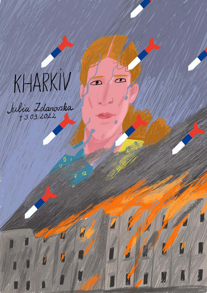 «Η Yulia Zdanovska, εθελόντρια , σκοτώθηκε από τους βομβαρδισμούς στο Χάρκοβο. Νικήτρια της Ευρωπαϊκής Μαθηματικής Ολυμπιάδας μεταξύ των κοριτσιών. Ήταν μόλις 21 ετών.»