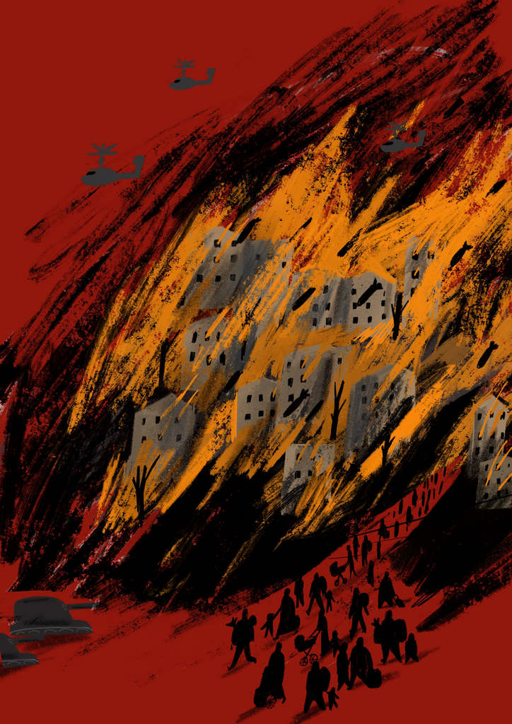 εικόνες από πόλεις που καταστρέφονται από τους βομβαρδισμούς των Ρώσων, από ανθρώπους που κρύβονται χαλάσματα, από οικογένειες που ξεριζώνονται.