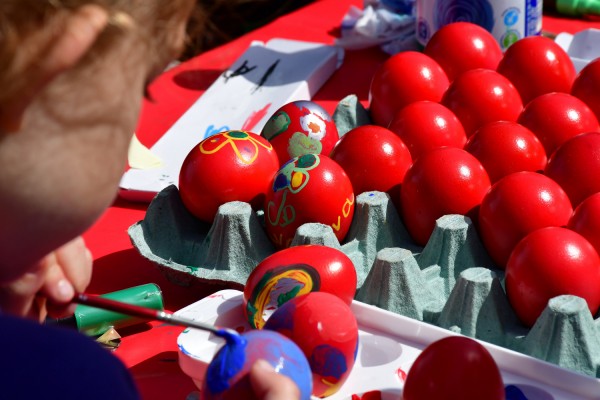 Μετά τη συνηθισμένη διανομή, γιατί πώς να φαγωθούν 300 αβγά, ερχόταν η ώρα που η μητέρα έτρεμε κάθε χρόνο. Ο πατέρας ήθελε να βάψει τα Πασχαλινά αβγά. Ο ίδιος, όχι η μητέρα, μην και την κουράσει και καλά (για να μην του αρνηθεί το έκανε, αμ τι!). Δεν ήθελε βοήθεια αλλά ήθελε παρέα, να μην είναι μόνος και να του δίνουμε και τα απαραίτητα στο χέρι, βλέπε αβγά, μπογιές, κατσαρόλα, τρυπητή κουτάλα, πανάκι με λάδι, χαλκομανίες. Η μητέρα με τρόπο άλλαζε δωμάτιο, τάχα είχε δουλειές, κι έμενα εγώ μαζί του, να κρατώ την ψυχραιμία μου και το στόμα μου μαζί καθώς έκανε την κουζίνα άνω κάτω!