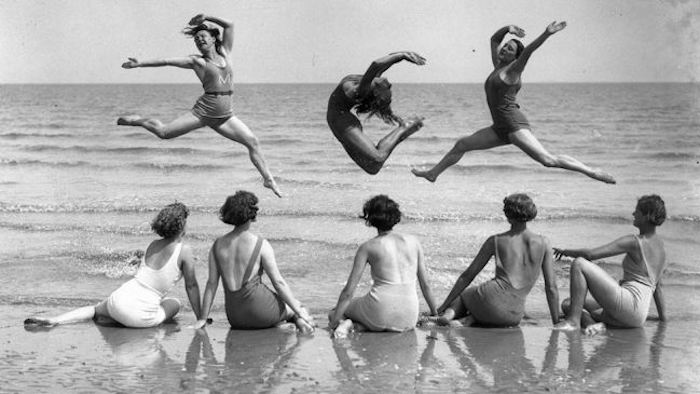 Ακολουθεί η ομαδόν εισβολή των κολυμβητών στη θάλασσα.