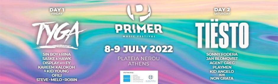 Το Primer Music Festival είναι η απόλυτη φεστιβαλική εμπειρία! Ένα υπερθέαμα που ενώνει όλους τους λάτρεις της χορευτικής μουσικής! Παρασκευή 8 – Σάββατο 9 Ιουλίου στην Πλατεία Νερού!