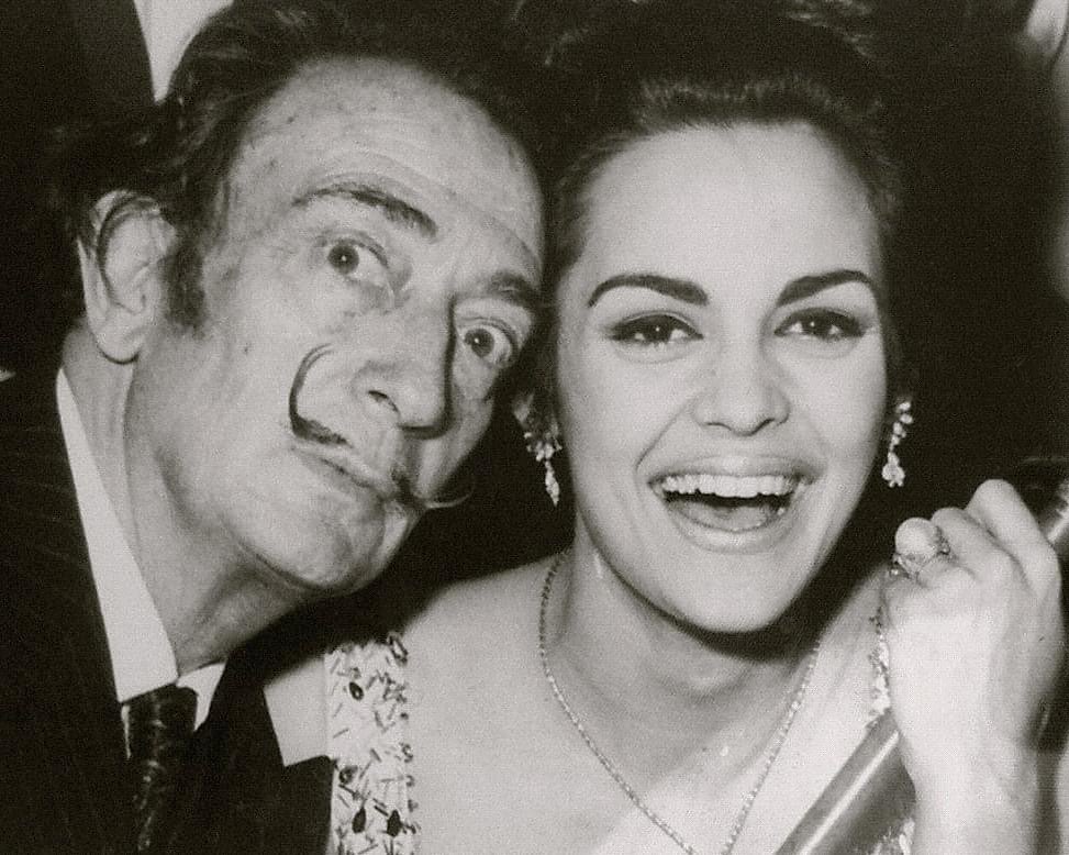 Ο Σαλβαντόρ Νταλί συναντά την Κορίνα Τσοπέη στα εγκαίνια της έκθεσης ζωγραφικής του Μπότη Θαλασσινού στη Νέα Υόρκη το 1966.