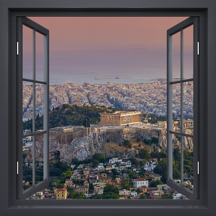 Parthenon temple on the Athenian Acropolis, Greece..https://pixers.us/wall-murals/black-window-open-parthenon-greece-PI100000002401.