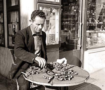 ΕΚΕΜΒΡΙΟΣ. ΚΑΤΕΒΑΙΝΩ τὴν Τσιμισκή· γωνία μὲ Ἀριστοτέλους, βλέπω τὸν καστανὰ ἀπ’ τὸ παλιὸ Ἀναγνωστικό τῆς Β’ Δημοτικοῦ, τὸν ζωγραφισμένο ἀπ’ τὸν Γιῶργο Μανουσάκη (κάποιοι νομίζουνε, λάθος, ὅτι εἶναι ζωγραφιὰ τοῦ Γραμματόπουλου), νὰ κάθεται στὴ γωνία μὲ τὴ φουφοὺ καὶ νὰ ψήνει κάστανα. Στὲκομαι διστακτικὰ μπροστά του. Τὸν κοιτάζω ἐπίμονα, ἐξεταστικὰ – κι ὅμως εἶναι ἐκεῖνος, ὁ ἴδιος, αὐτοπροσώπως. Τοῦ ζητάω ἀμήχανος ἕνα σακουλάκι. Αὐτὸς πιάνει ἐπιδέξια μερικὰ ψημένα κάστανα μὲ μιὰ μασιά, τὰ βάζει προσεκτικὰ σὲ μιὰ μικρὴ χάρτινη σακούλα καὶ μοῦ τὰ δίνει – βγάζω καὶ τὸν πληρώνω.